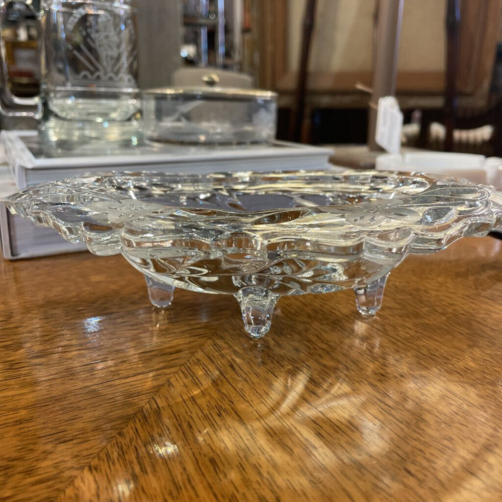 Floral Footed Glass Dish w/ Feet - Candy Dish, Soap Dish, Potpourri Dish