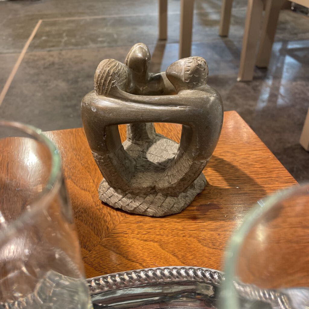Hand Carved Stone Sculpture with 3 Figures - 5inx5in