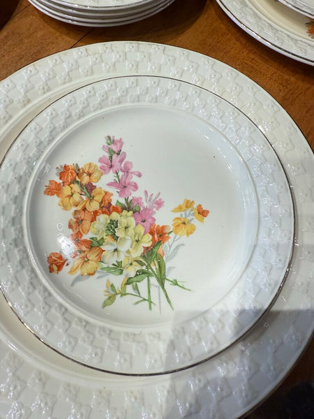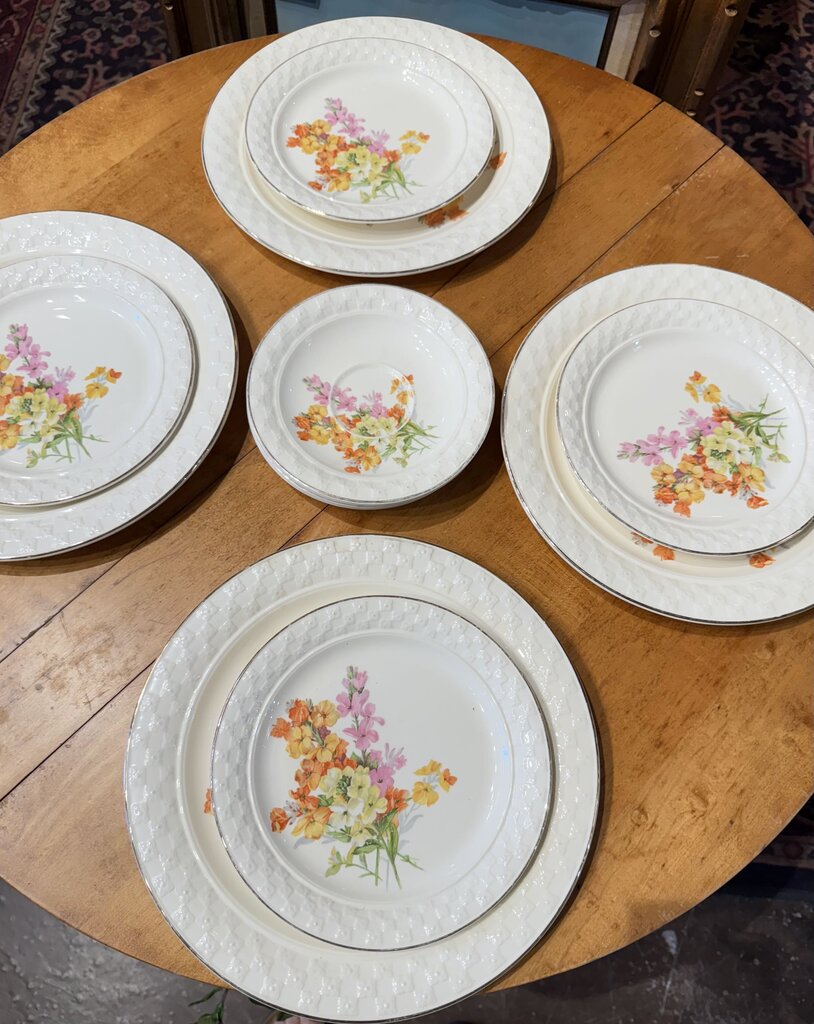 Vintage Taylor Smith floral service for 4, 19 pieces total